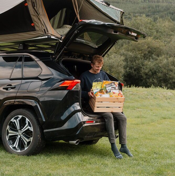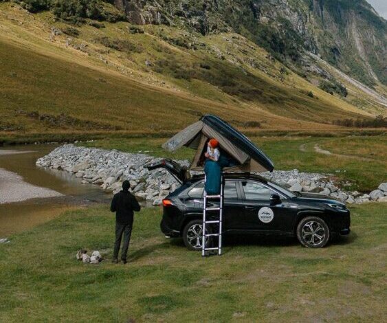 • Een volledig uitgeruste SUV met daktent.
